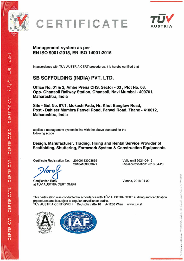The Saarvi Group is established in 2004 based on the strong foundations of providing quality services. We have emerged as an eminent providers of M.S. Scaffolding & Shuttering Material, Construction equipments on Manufacturing / Hire basis on Pan India Level. We are one of the leading scaffolding suppliers and manufacturers in Mumbai. We also provide Cleaning and Disinfection of drinking water tanks with Pest Control Services. The benchmark for our services has always been timely completion of work, with highest priority to quality.